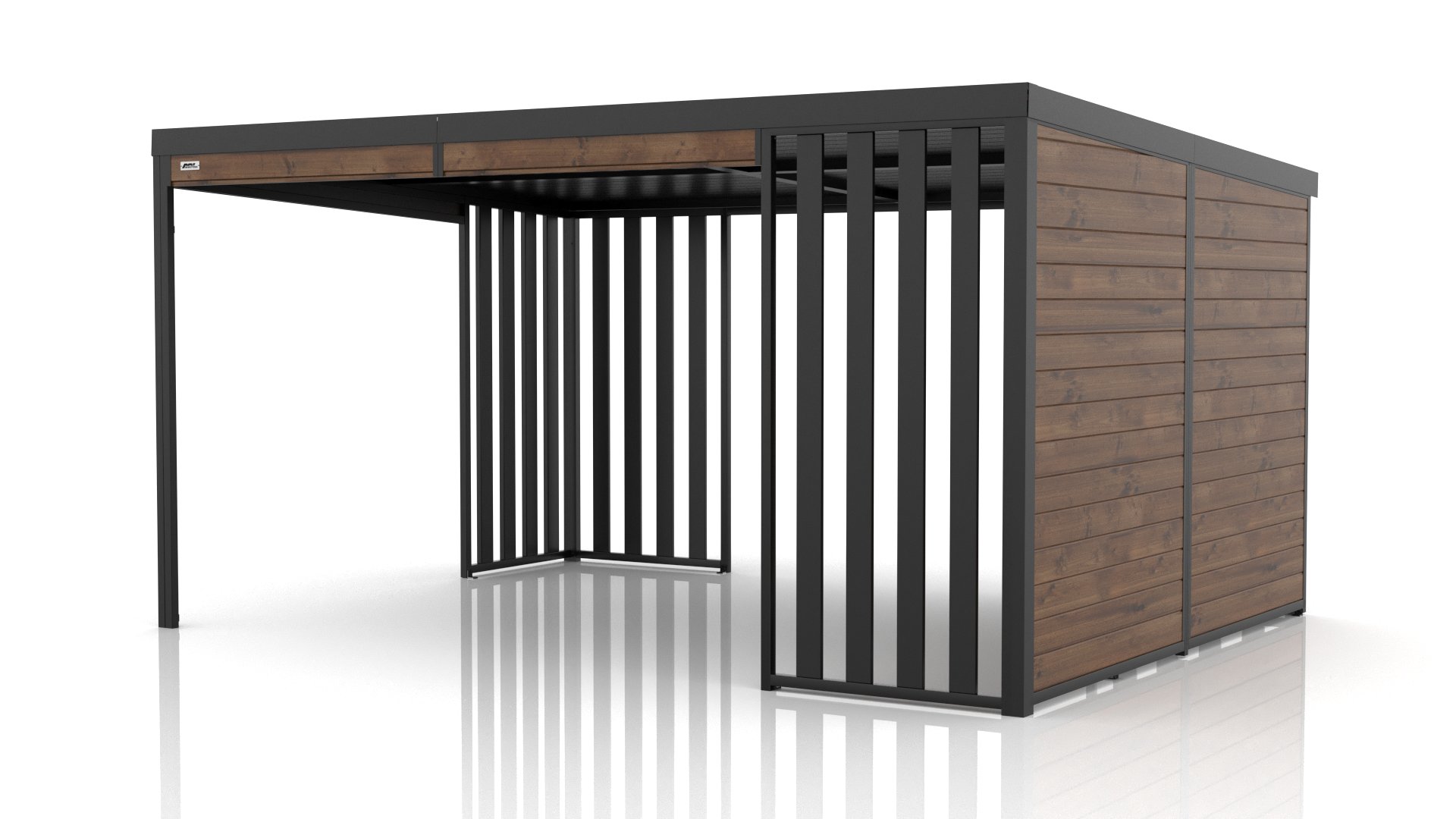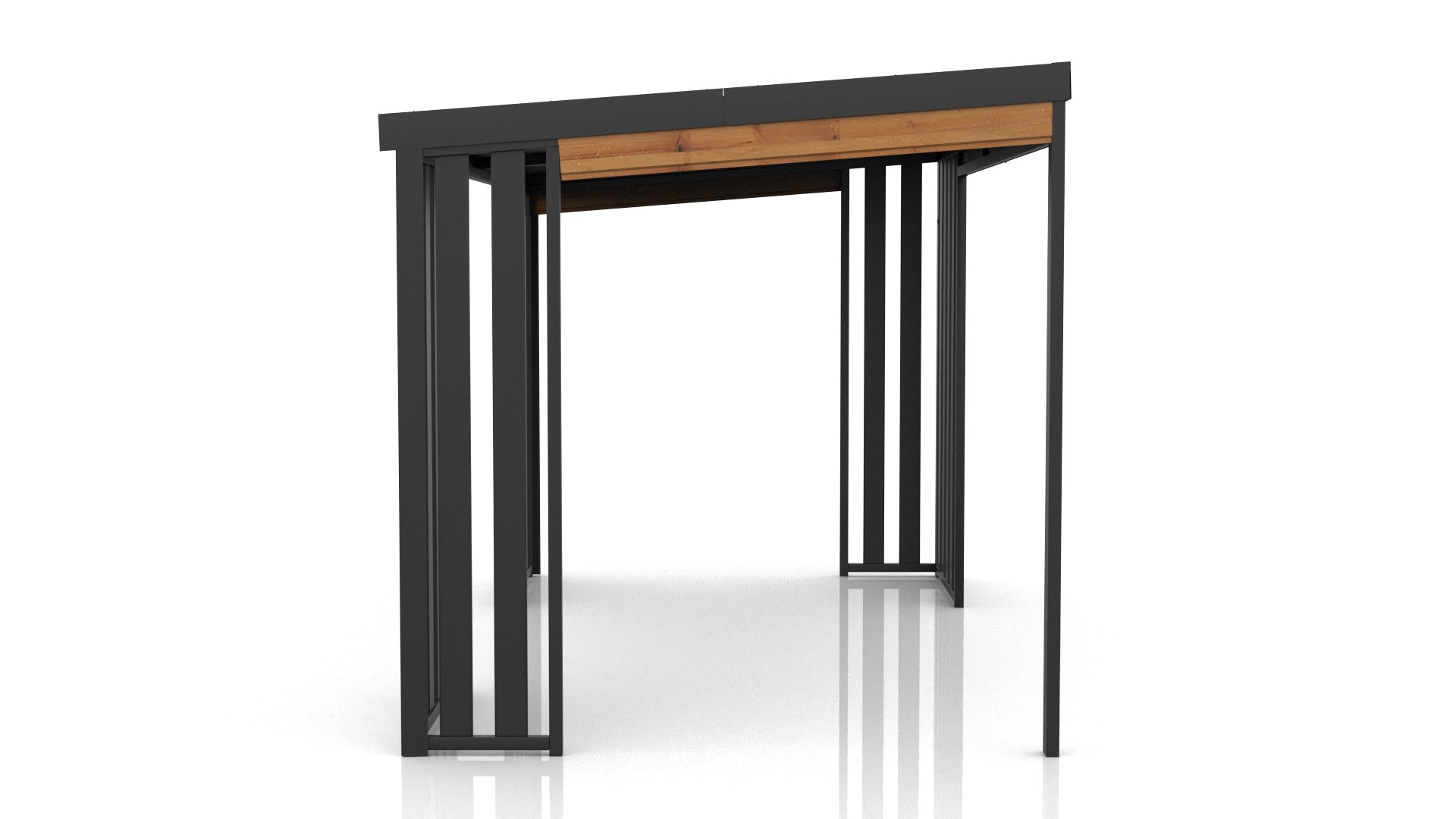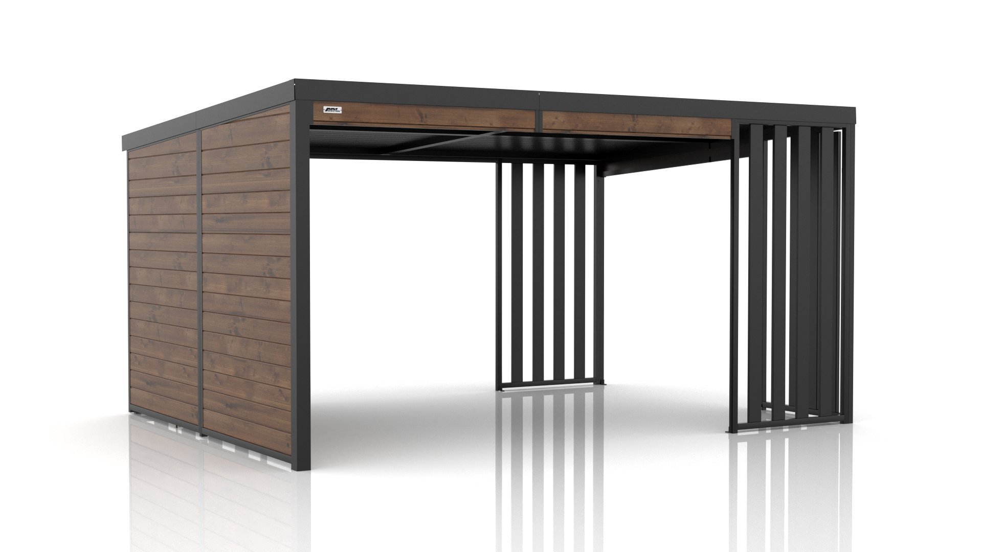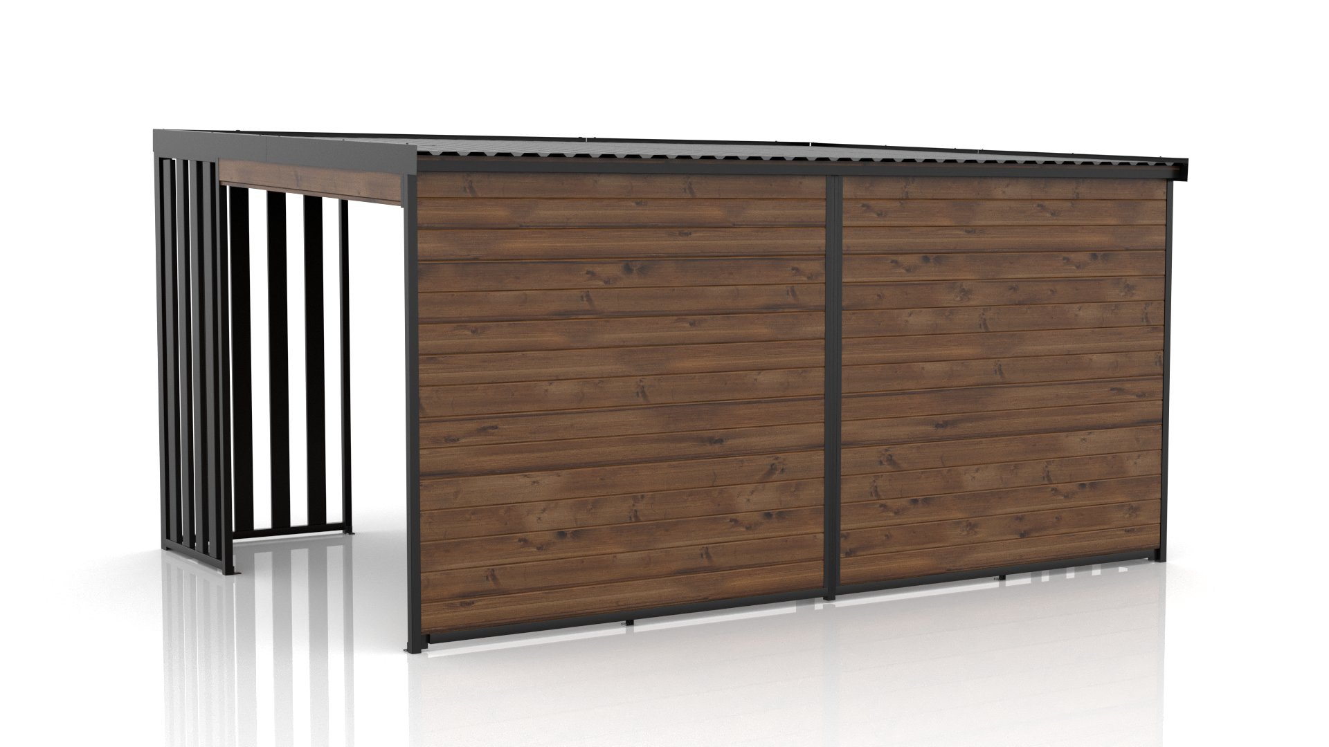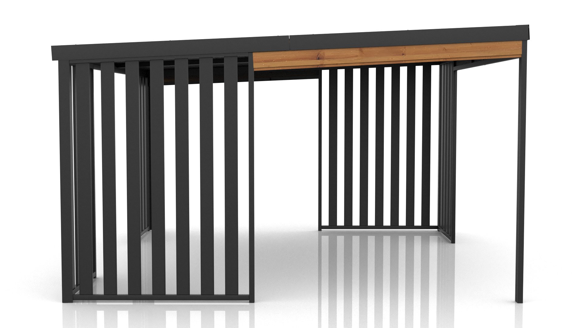 - Dwa rodzaje dachu: standardowy metalowy lub metalowy podbity deską skandynawską, zapewniający dodatkową ochronę przed promieniami słonecznymi.