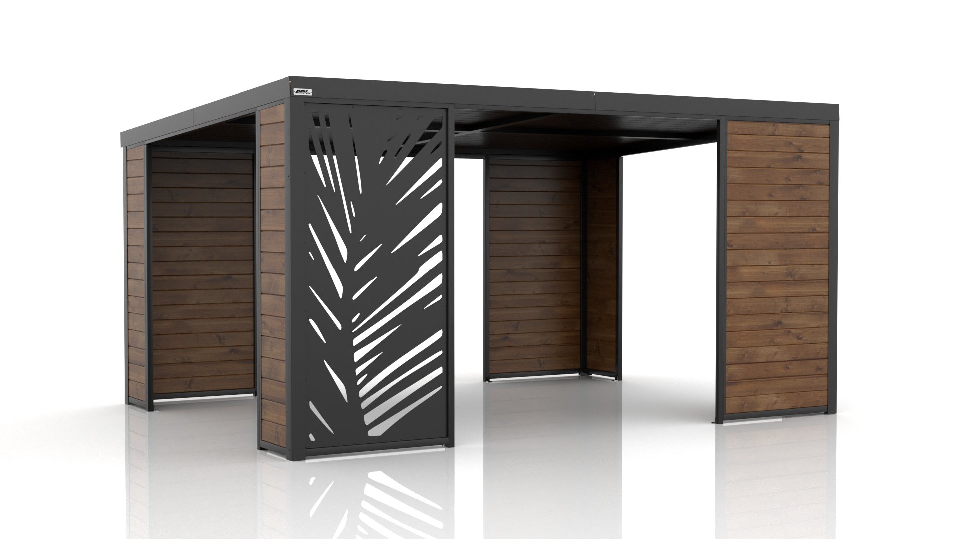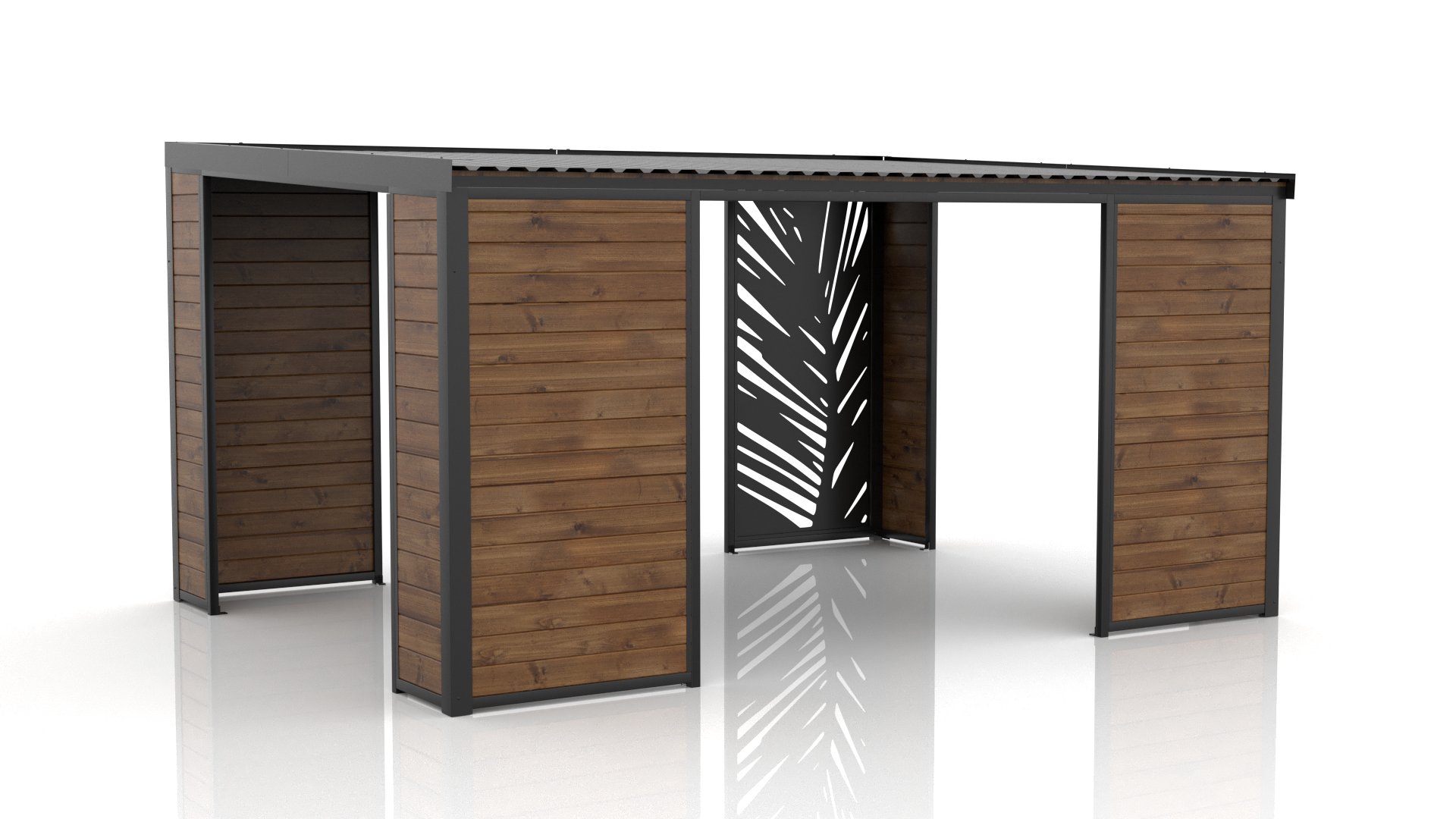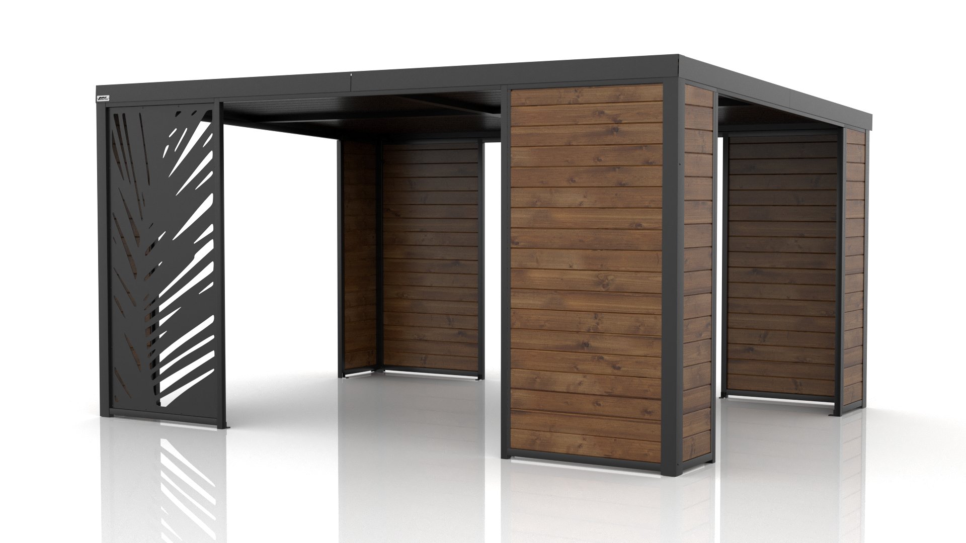 Szeroki wybór modyfikacji dotyczy również ścian altany. Klient może dowolnie skonfigurować ściany boczne oraz tylną. Mogą być one otwarte lub zabudowane. Do wyboru są trzy rodzaje wypełnienia ścian: blacha metalowa, drewno naturalne skandynawskie oraz deska kompozytowa.