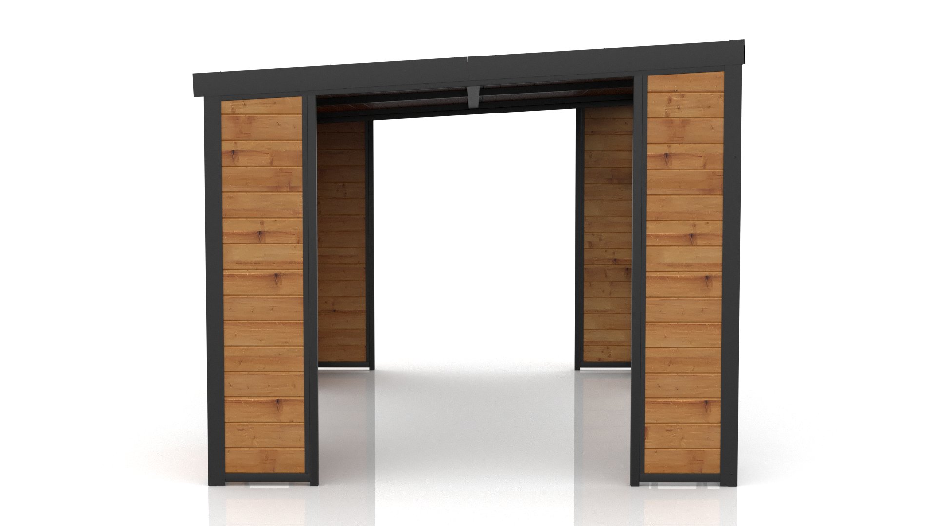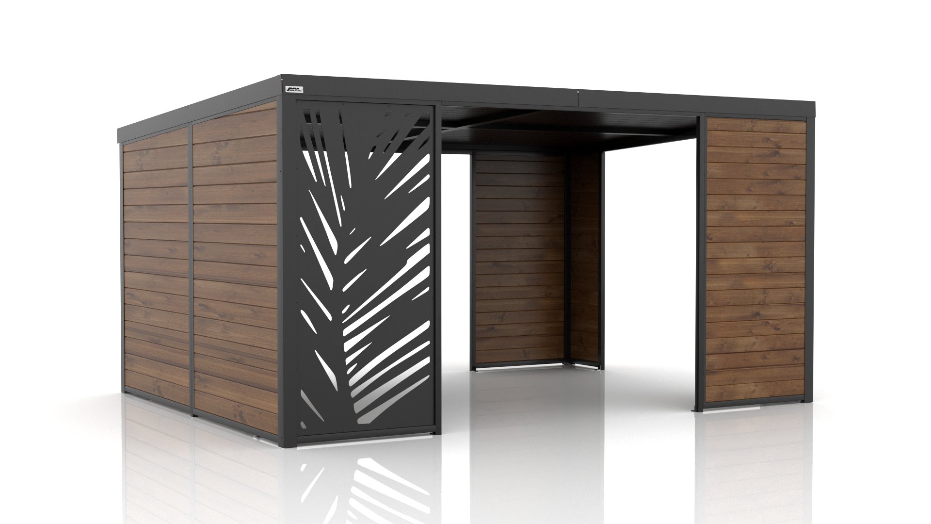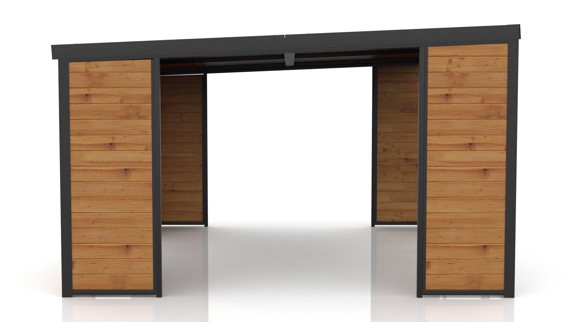 Szeroki wybór modyfikacji dotyczy również ścian altany. Klient może dowolnie skonfigurować ściany boczne oraz tylną. Mogą być one otwarte lub zabudowane. Do wyboru są trzy rodzaje wypełnienia ścian: blacha metalowa, drewno naturalne skandynawskie oraz deska kompozytowa.