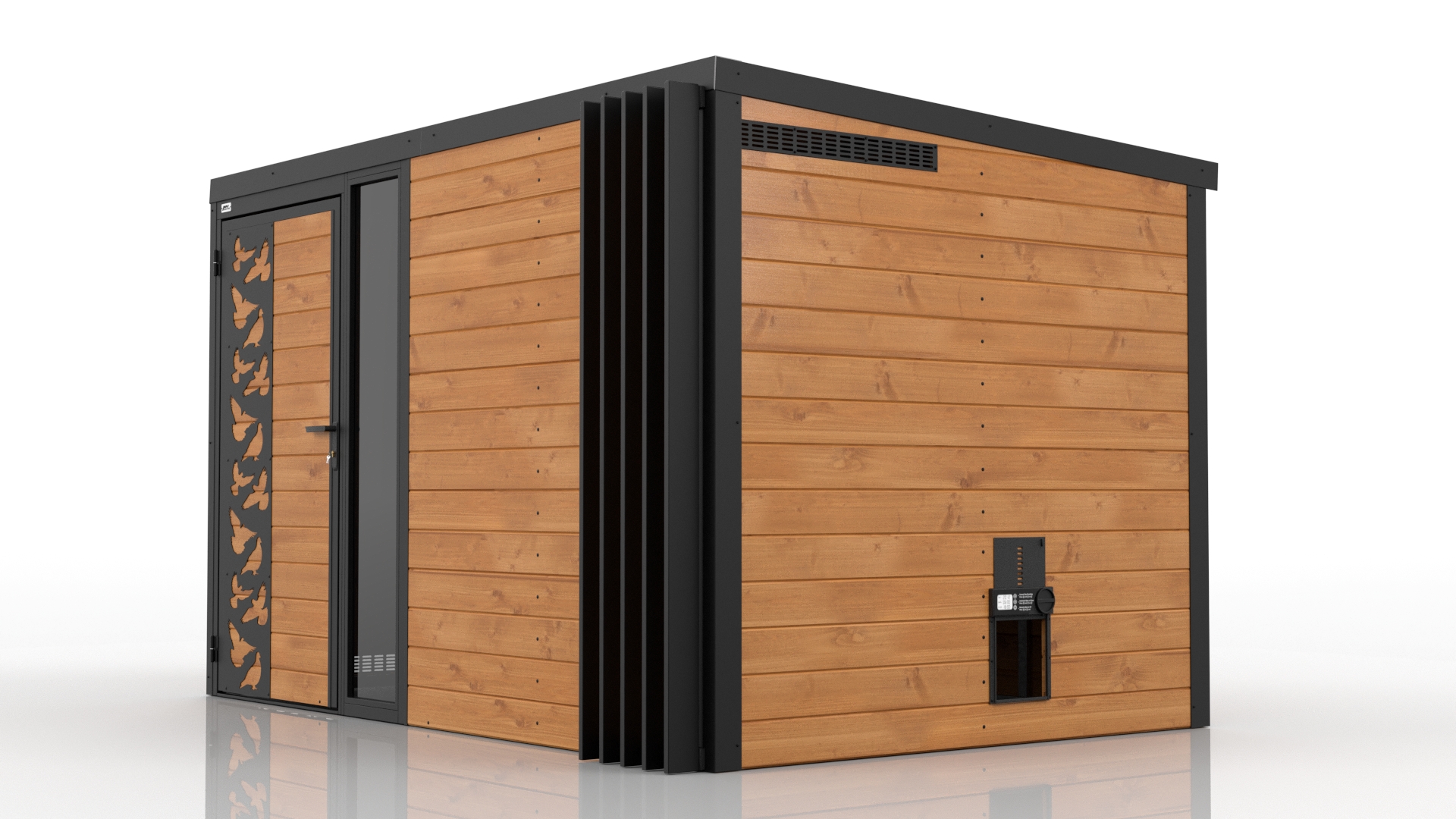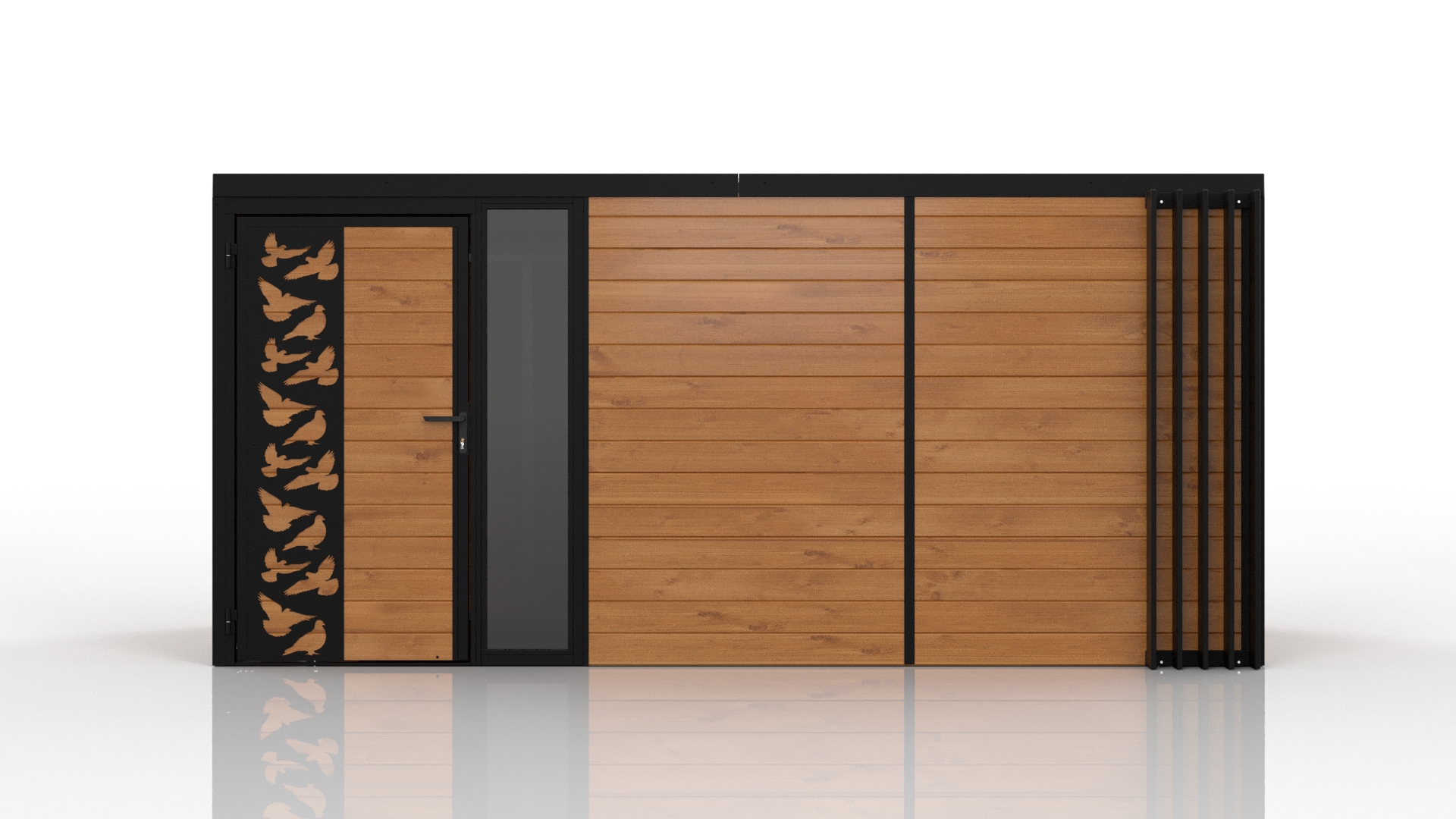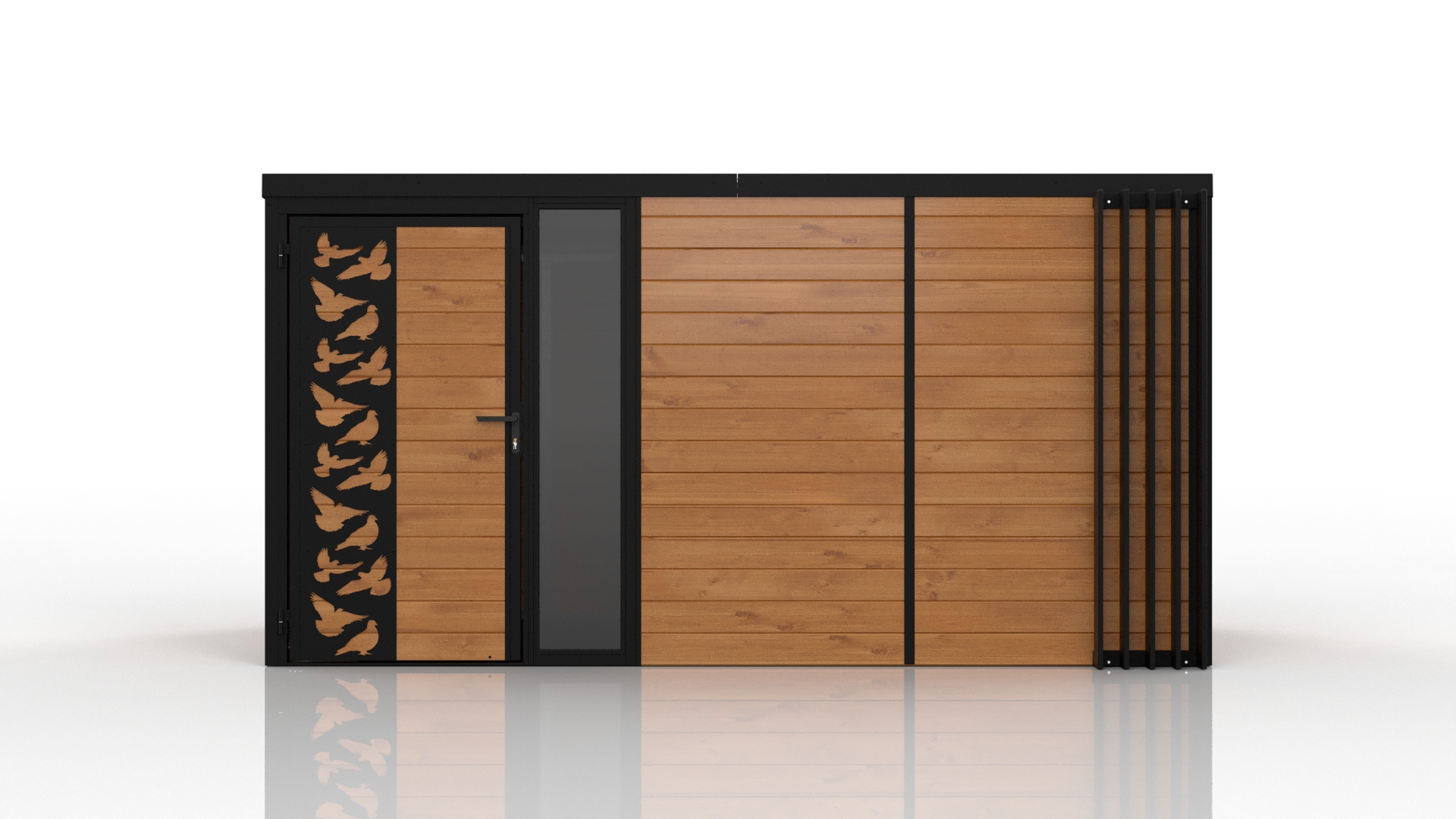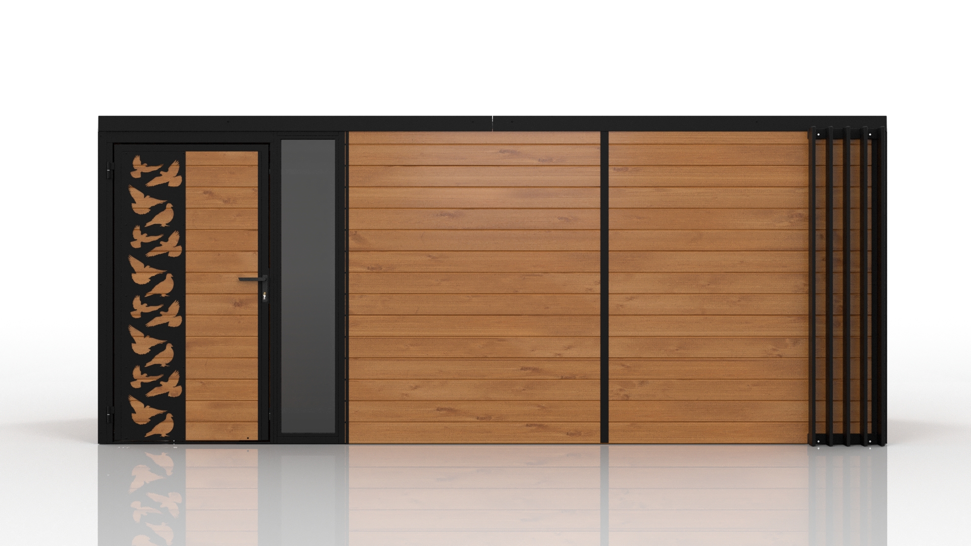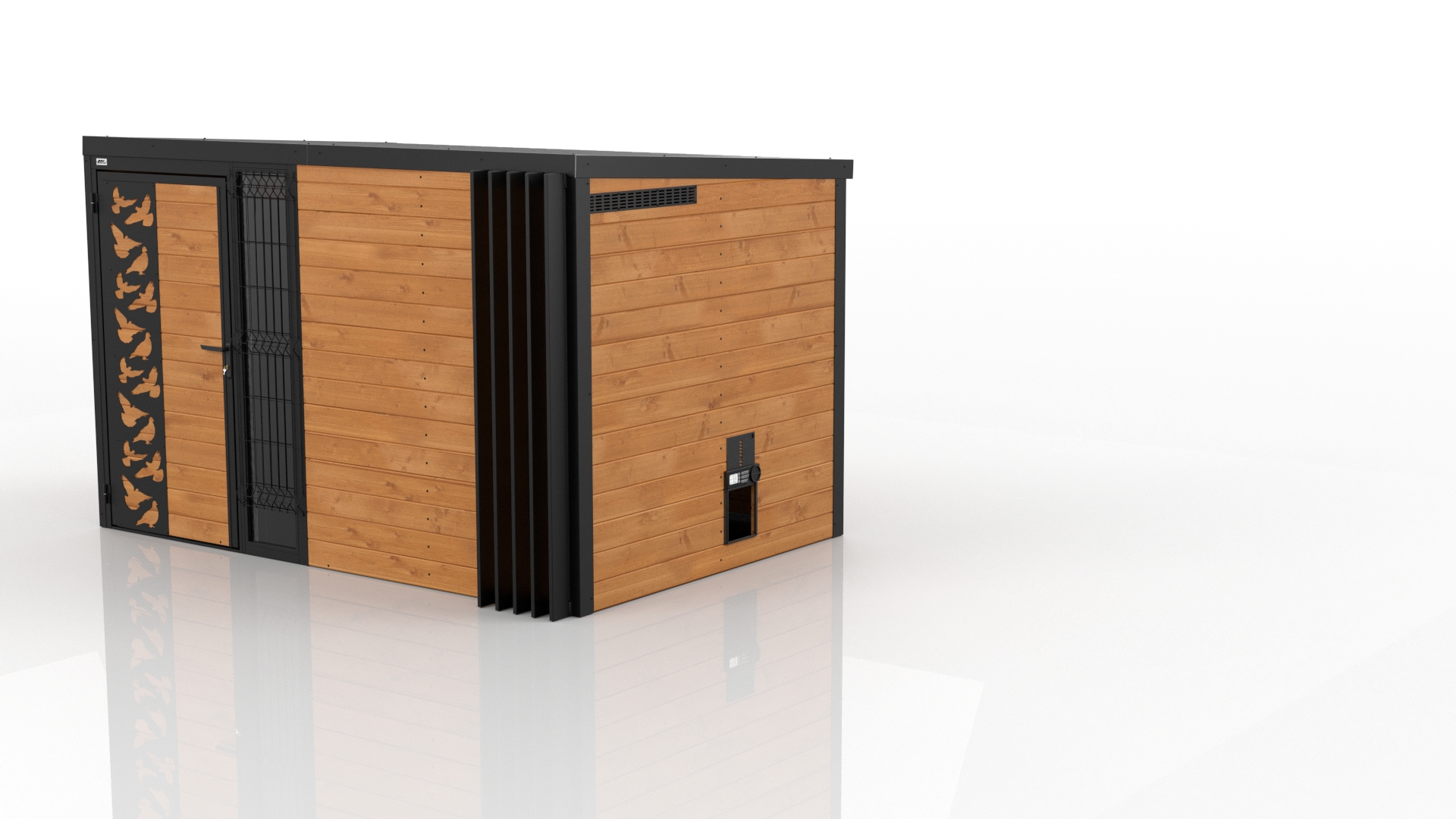 Domani to zabudowa zaprojektowana z myślą o użytkownikach, którzy cenią nowoczesny wygląd, solidność i praktyczne zastosowanie. Konstrukcja bazuje na stalowych profilach ocynkowanych, co gwarantuje wysoką wytrzymałość i odporność na korozję. Obudowa wykonana z deski podbitkowej nadaje całości naturalny, stonowany wygląd, doskonale wpisujący się w różne style otoczenia.
