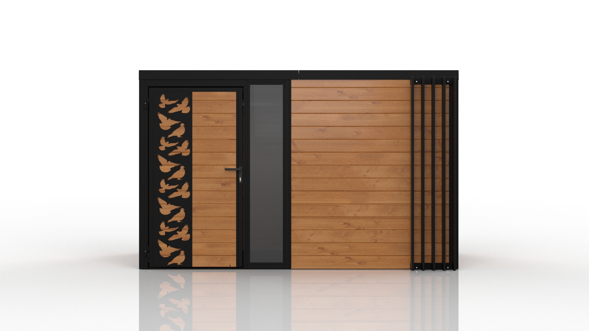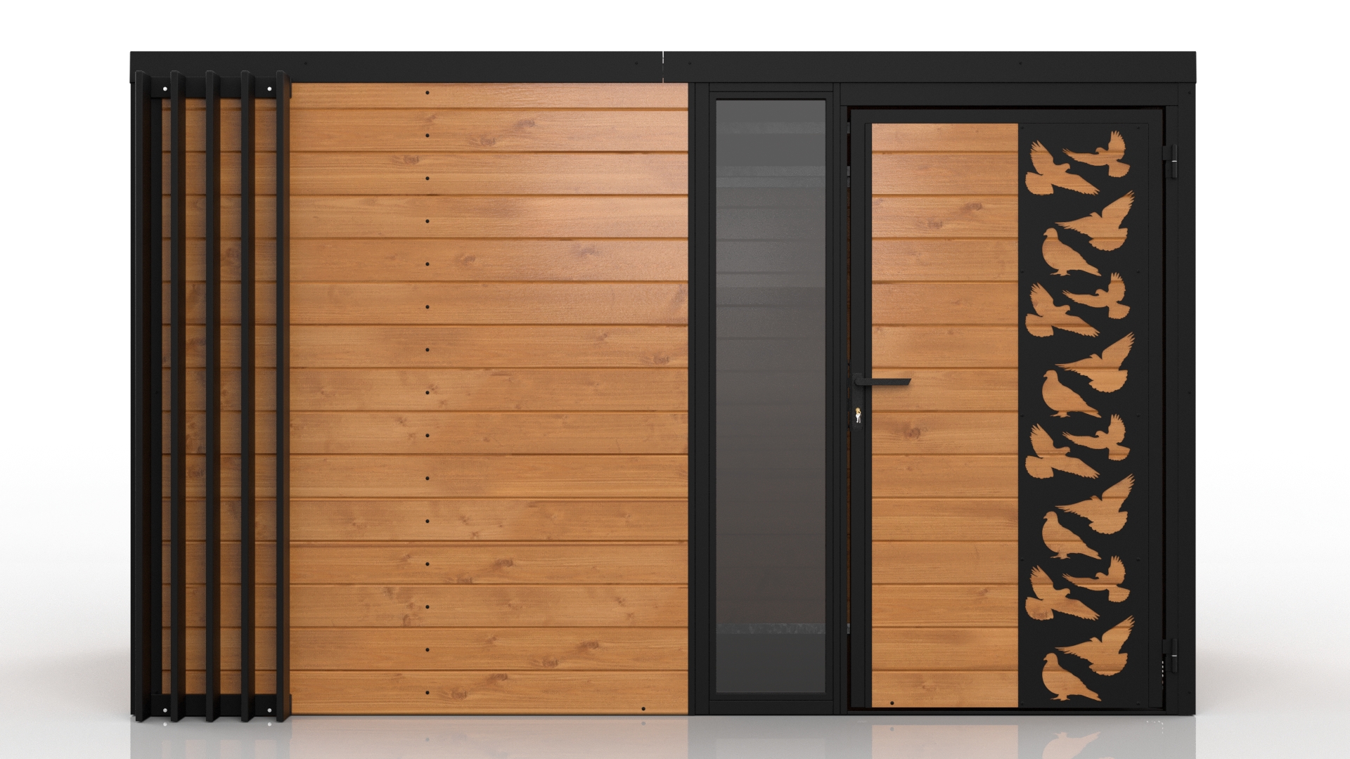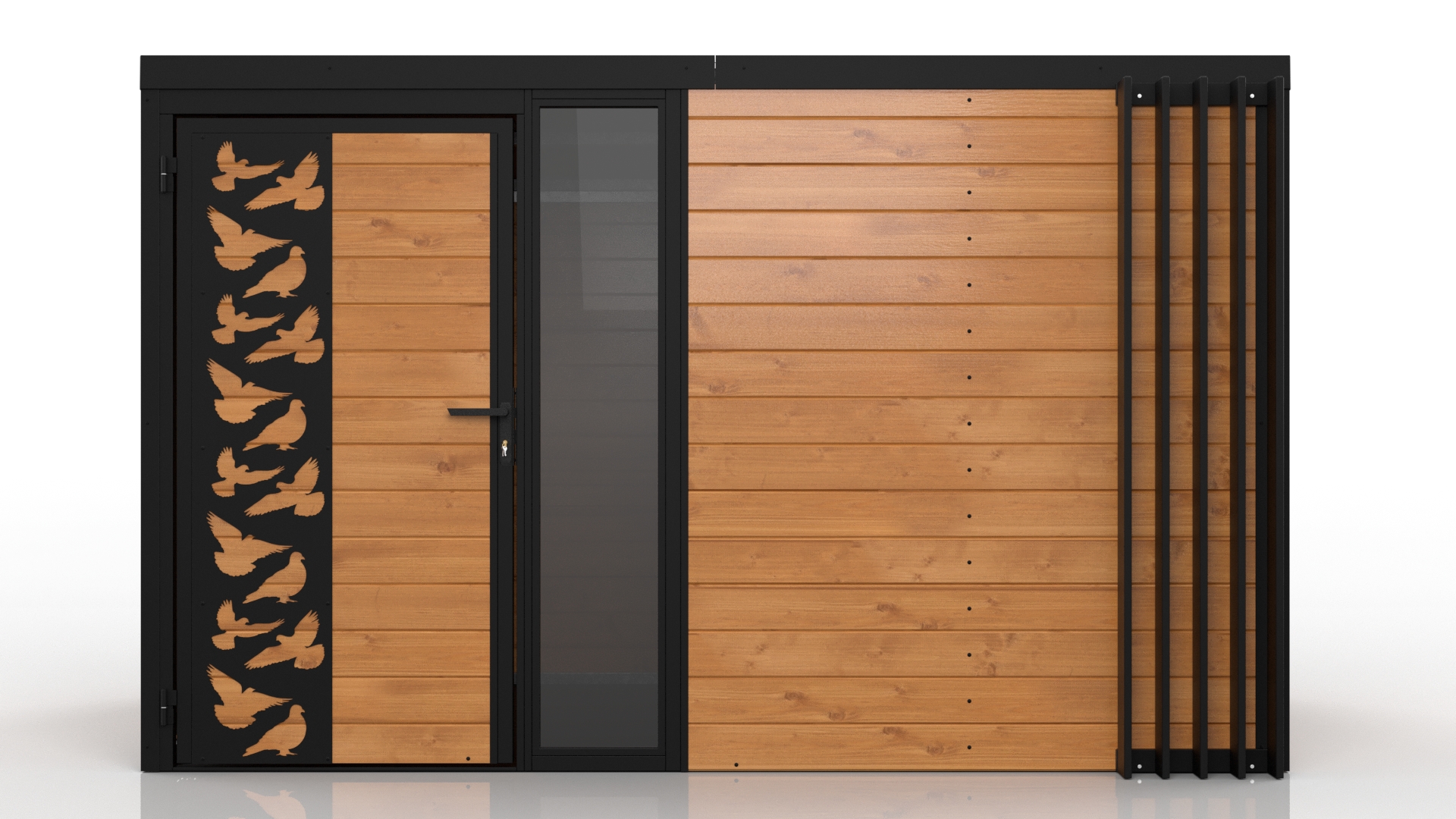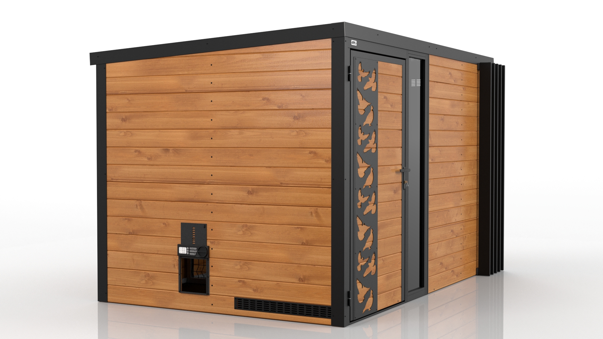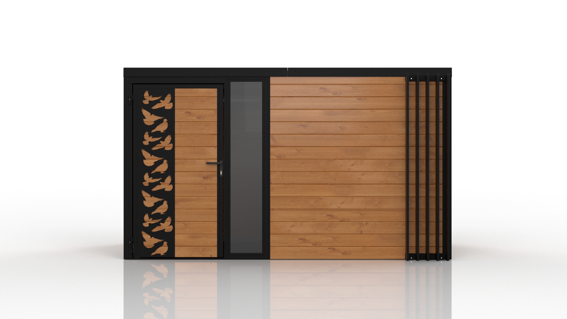 Domani to zabudowa zaprojektowana z myślą o użytkownikach, którzy cenią nowoczesny wygląd, solidność i praktyczne zastosowanie. Konstrukcja bazuje na stalowych profilach ocynkowanych, co gwarantuje wysoką wytrzymałość i odporność na korozję. Obudowa wykonana z deski podbitkowej nadaje całości naturalny, stonowany wygląd, doskonale wpisujący się w różne style otoczenia.