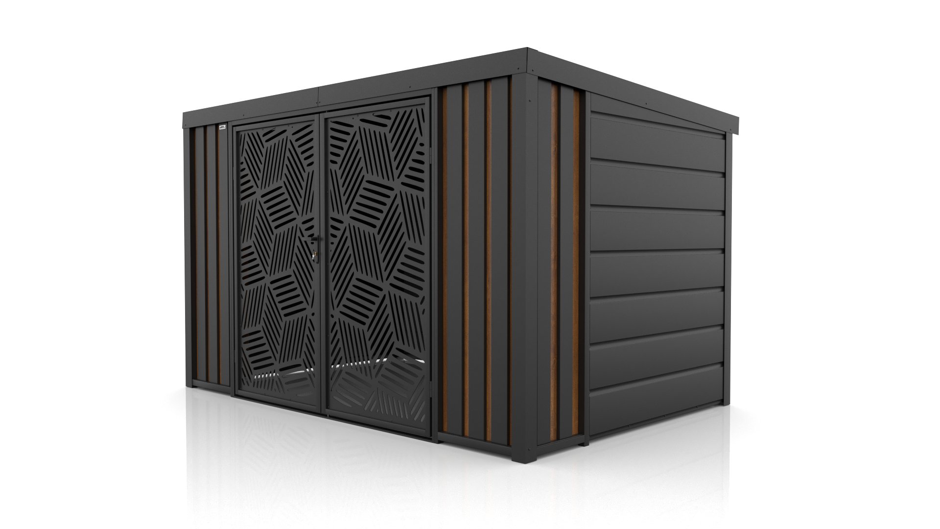 W Venturo każdy detal został zaprojektowany z myślą o użytkowniku. Dwuskrzydłowe drzwi, zdobione motywem wycinanym laserowo, nie tylko ułatwiają dostęp, ale są również prawdziwym dziełem sztuki, które ozdobi każdy ogród. Jego nowoczesna konstrukcja nie tylko harmonizuje z otoczeniem, ale także podkreśla charakter nowoczesnych przestrzeni zewnętrznych.